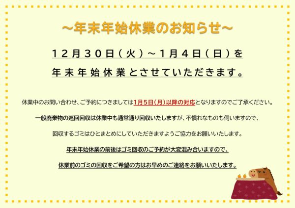 【年末年始休業のお知らせ】