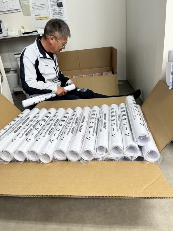 この巻いたカレンダーを、お客様に順次お配りしています。